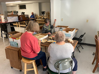 We met at the Shop on Wood Ave today for the third time. Work continues on the facility. Today Rick added plug-ins to three workbenches. Grant brought in two 5" long tables and 8 metal folding chairs. Rick removed linoleum from the former bathroom. Jerry brought in 4 plastic folding chairs. Dennis brought in a 6' long formica countertop. We put table risers on a plastic work table. We refined our wheel install area by moving a few tables around for more efficient work flow.