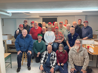 We started the preliminary setup for the Toy Packing and Distribution Day at 8:30 am on Saturday Dec 3, 2022. This included preliminary things like moving tools out of the store room, moving the boxes of toys from the store room to the shop area, setting up all the toys in toy number order, and taking photos of "one-each" of all the toys on a table by category, and then as a total group, and then putting those toys back. We started "toy picking and box filling" about 9:45 am and finished by 11 am. We packed 137 boxes total.